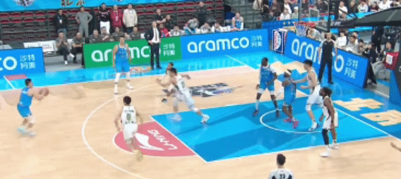 赵继伟伤缺,王岚嵚组织进攻,他比以往进步很多,一个漂亮的助攻给到莫兰德,后者上篮拿分。