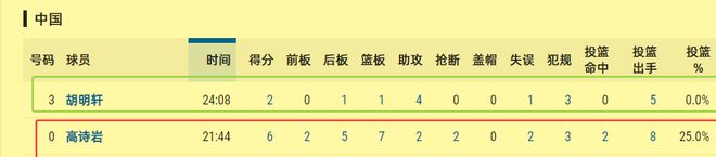 本来为国效力的球员都不应该被质疑,因为谁都有状态起伏的时候。但是既然有人带头网爆高诗岩,那就不得不说说胡明轩了。胡明轩这场比赛投篮5中0,一个运动战进球都没有,仅靠罚球拿了两分,如此糟糕的表现,比得了高诗岩的8中2吗?并且,高诗岩还有7个篮板球和2抢断进账,胡明轩拿什么比?