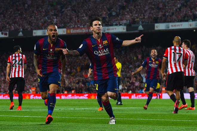 2015年5月30日,国王杯决赛,巴萨3-1击败毕尔巴鄂竞技。第20分钟,梅西在中场右路拿球后,用令人叹为观止的盘带技巧连过四人,随后将球打入近角,这也是过去12年梅西最精彩的进球之一。