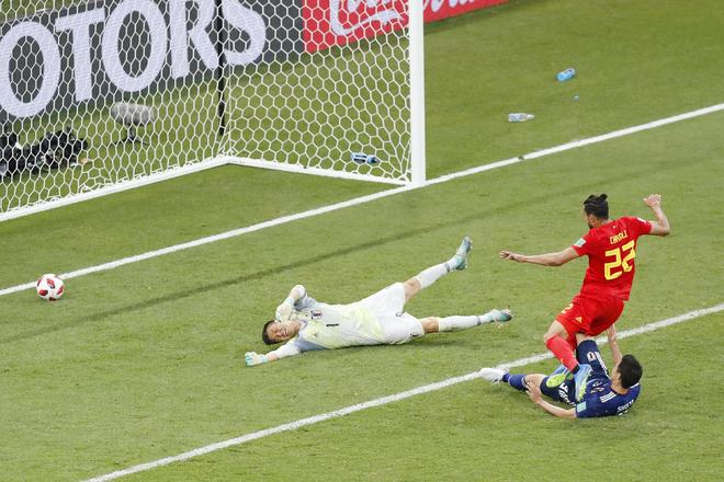 2018年7月2日,世界杯1/8决赛,比利时3-2逆转日本。第94分钟,比利时踢出了教科书式反击,由库尔图瓦发起,德布劳内策动,卢卡库走位,默尼耶助攻,沙兹利终结,日本队经历了痛彻心扉的罗斯托夫14秒!